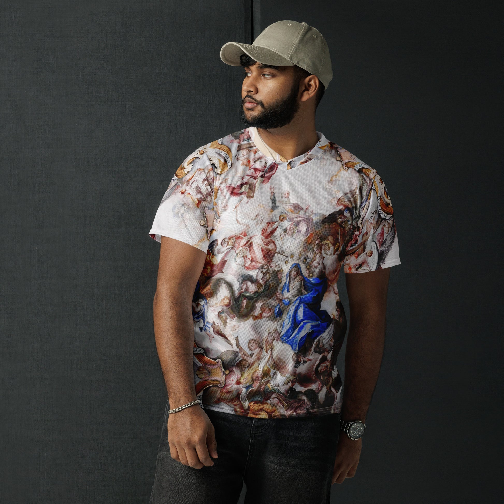 Breathable, moisture-wicking, and has a double-layered v-neck collar that creates a premium look. Print quality is high. No fading or bleeding. Machine wash and air dry.