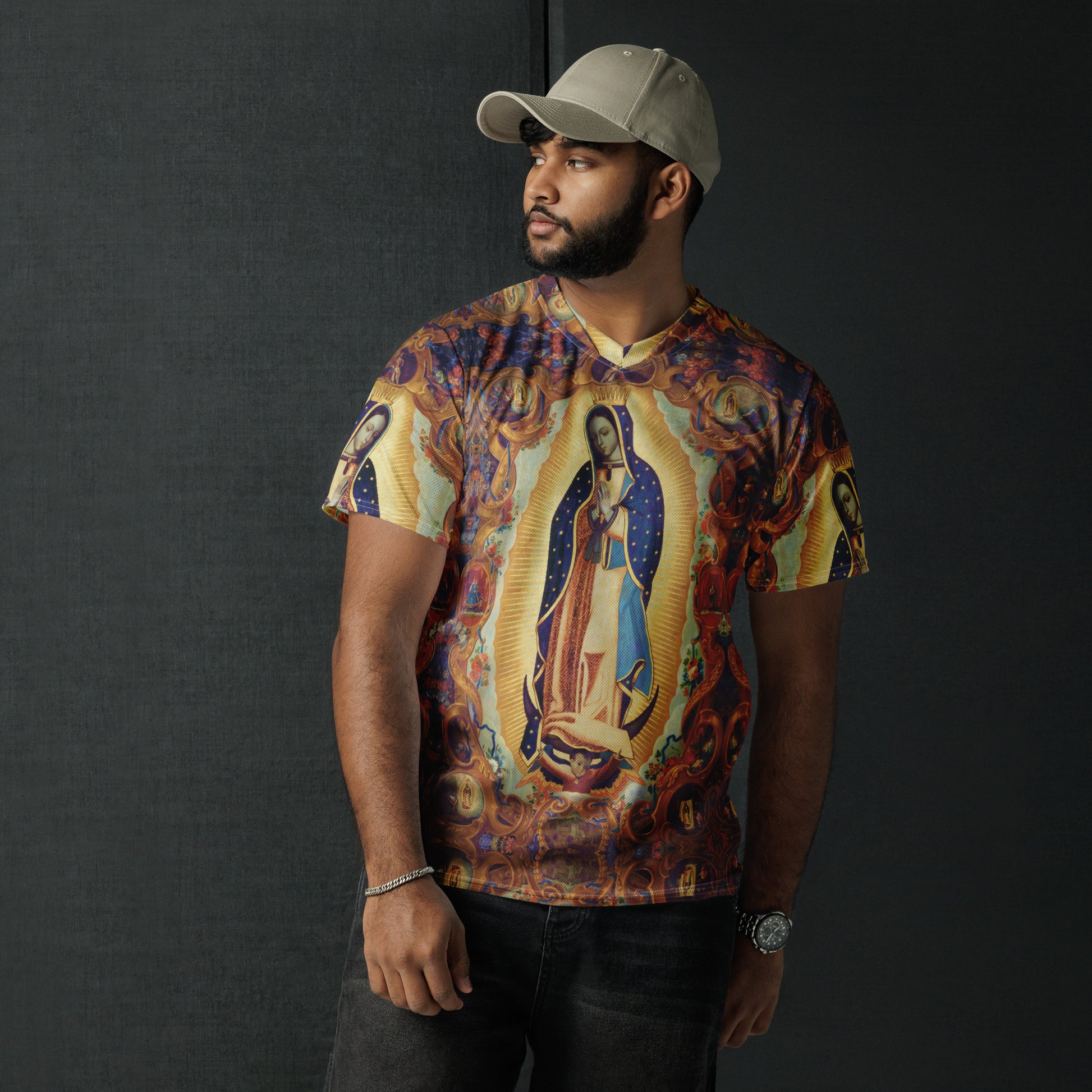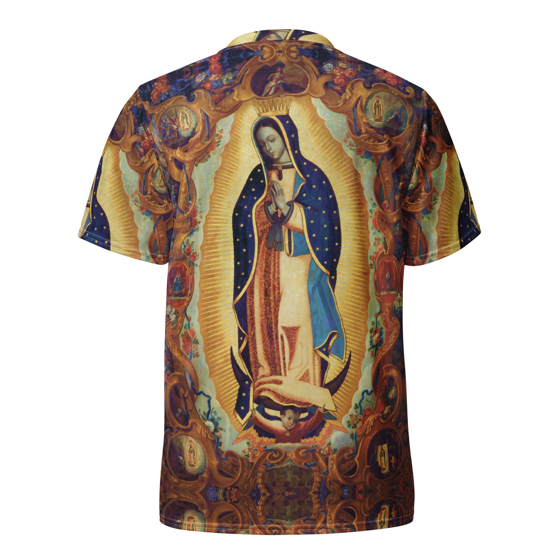 Our Lady of Guadalupe, Empress of the Americas, adorned in flowers and filigree, and tiny scenes of her story with St. Juan Diego!