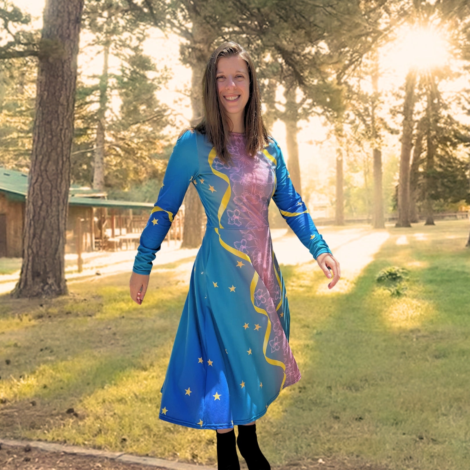 Designed to evoke the memory of Our Lady of Guadalupe -- her starry mantle and flowered dress