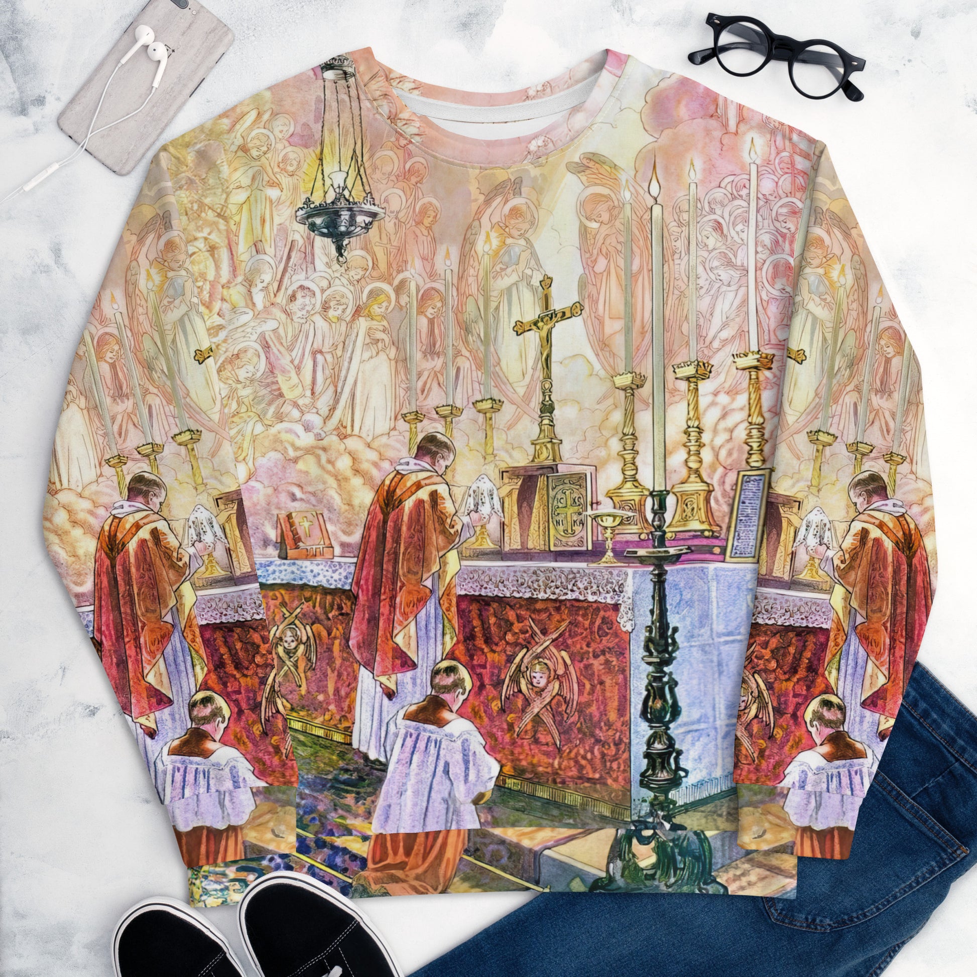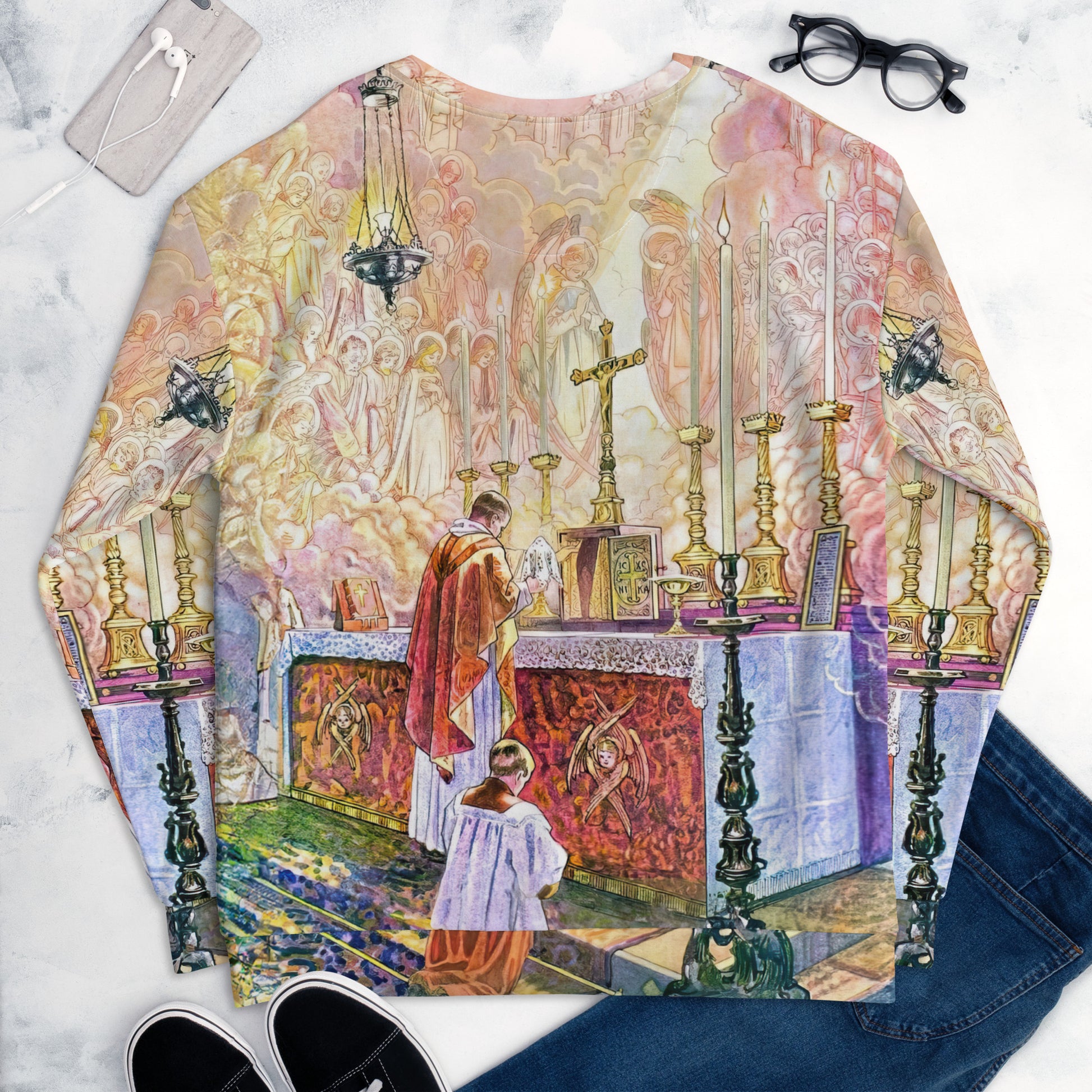 Each unique, all-over printed sweatshirt is precision-cut and hand-sewn to achieve the best possible look and bring out the intricate design. What's more, the durable fabric with a cotton-feel face and soft brushed fleece inside means that this sweatshirt is bound to become your favorite for a long time.
