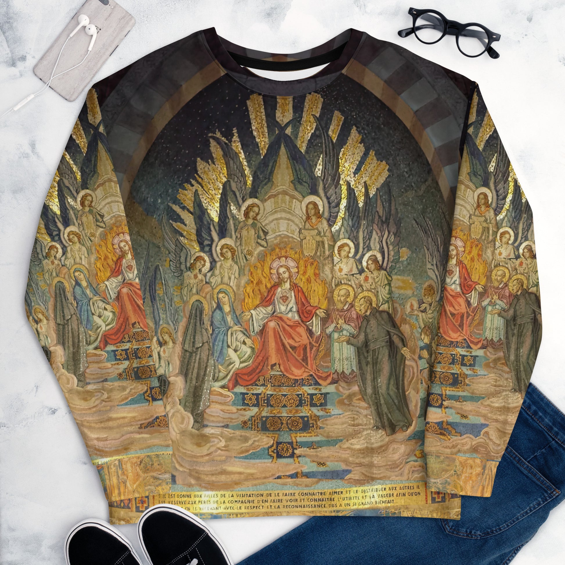 Artwork: This masterpiece is on the ceiling of St. Claude de la Colombiere Chapel in Paray-le-Monial. La Colombiere was St. Margaret Mary Alacoque's spiritual director, and helped spread devotion to the Sacred Heart of Jesus.